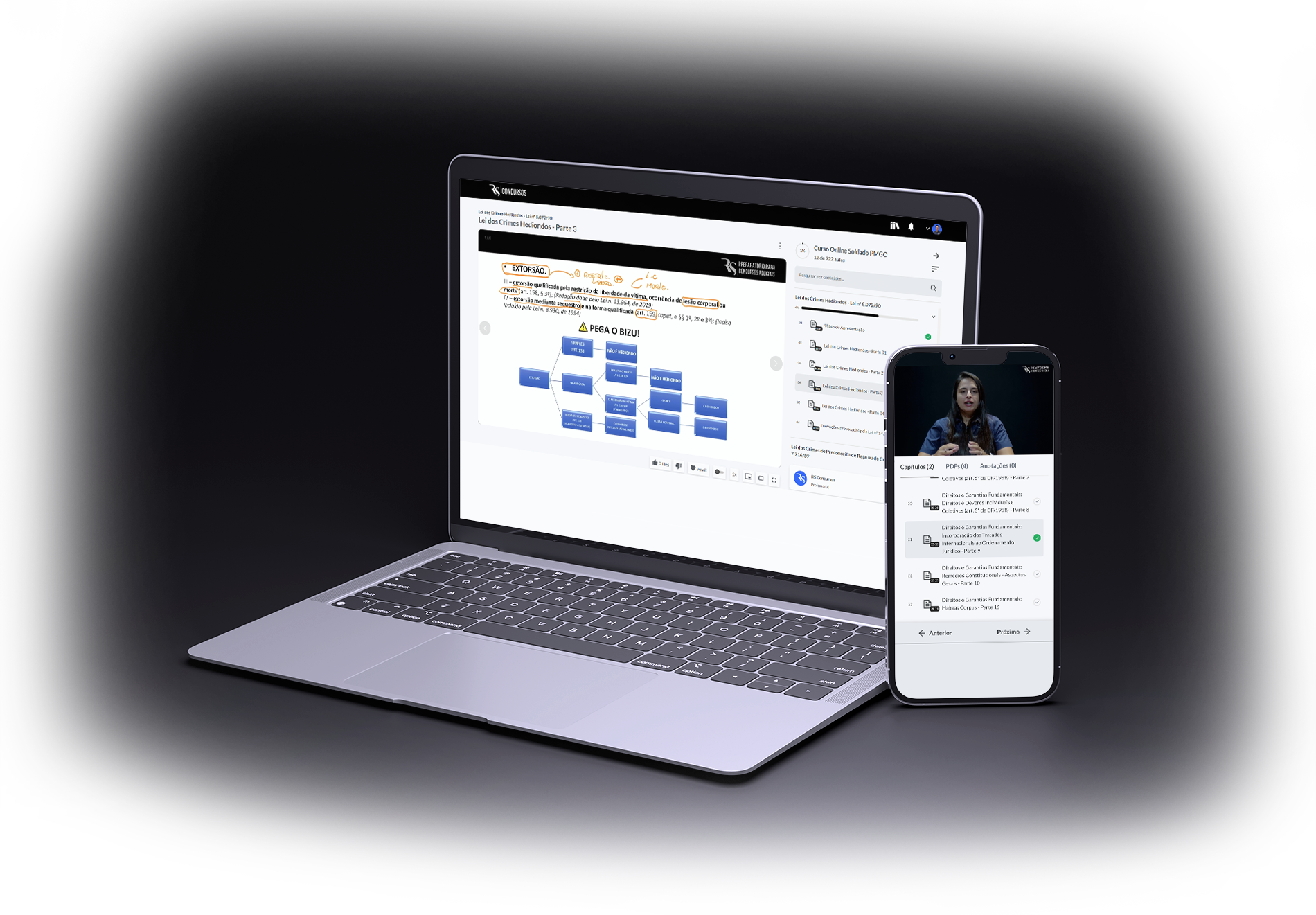 Com o RS Concursos, você vai direto ao que mais cai, revisa sem esquecer e chega na prova preparado para vestir a farda.
